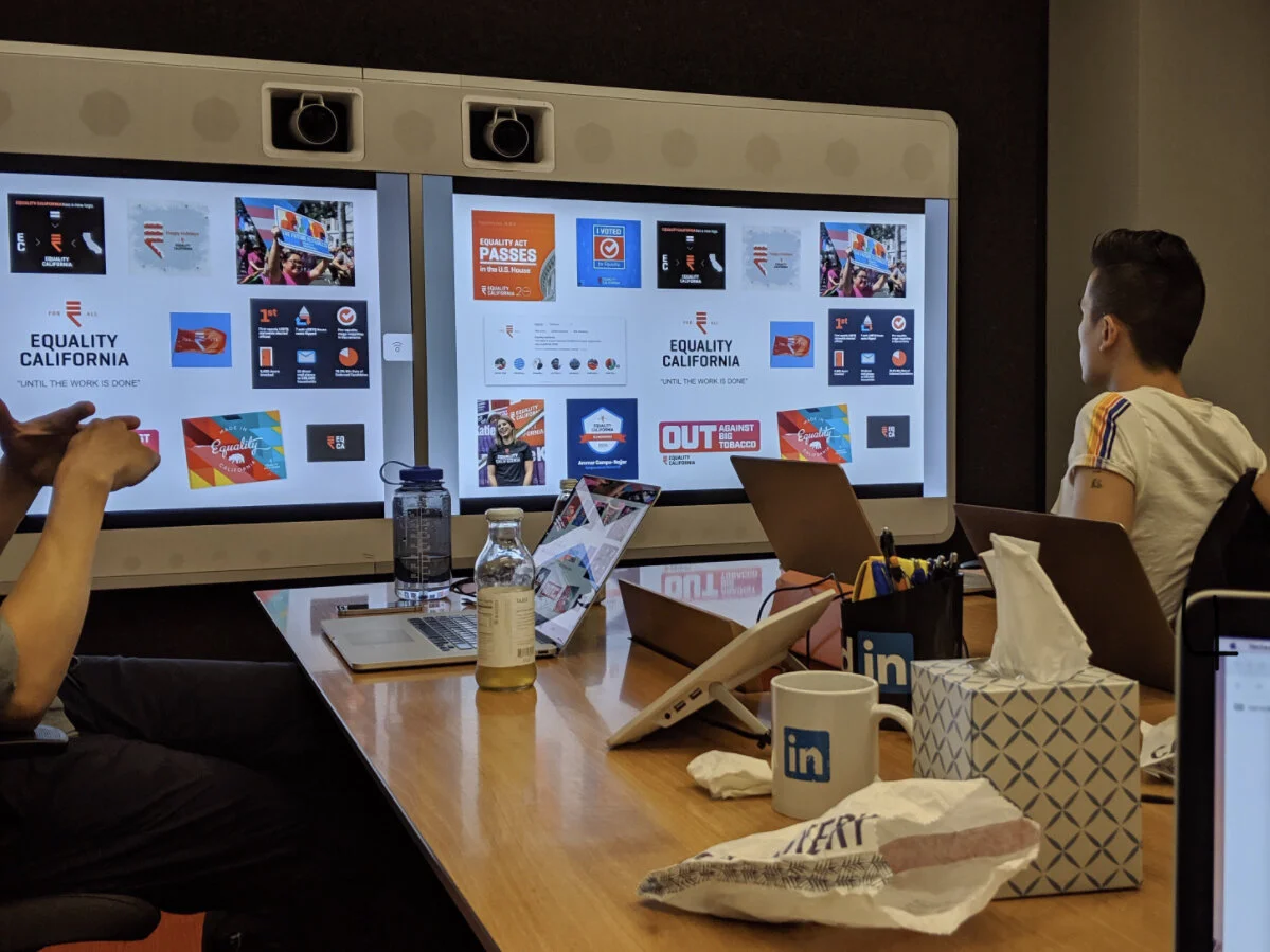 After considered rounds of design and feedback, we landed on a modern and abstract symbol so-simple-anyone-draw-it, with subtle echoes of “G-A-P-A”. This expanded our brand and allowed a respectful distance from explicitly being a gay organization. More importantly, we loved the symbol’s timeless evocation of unity, transformation, and power — something that we will always fight for.